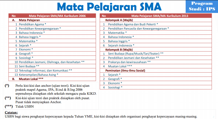 Pada satuan pendidikan sma, spesifikasi materi pembelajaran dalam ips telah berdiri sendiri menjadi suatu mata pelajaran tersendiri yaitu:
