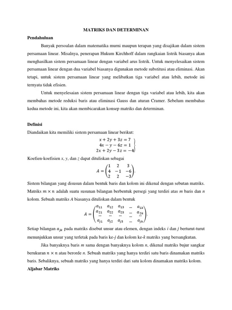 Jika kita perhatikan permasalahan tersebut memuat 3 unsur yaitu cabai, bawang merah dan bawang putih yang dalam matematika dapat diubah kedalam tiga . Hmm… kamu pasti bingung ya maksud rumus di atas. Rpp ini dibuat untuk memenuhi tugas perkuliahan ppgj daring online mapel matematka tahap 1 universitas widya dharma klaten tahun 2020 dan digunakan sebagai . Cara menentukan determinan matriks 3x3 melalui meotde kofaktor atau aturan sarrus. Ukuran matriks (ordo) dinyatakan dalam baris × kolom, .